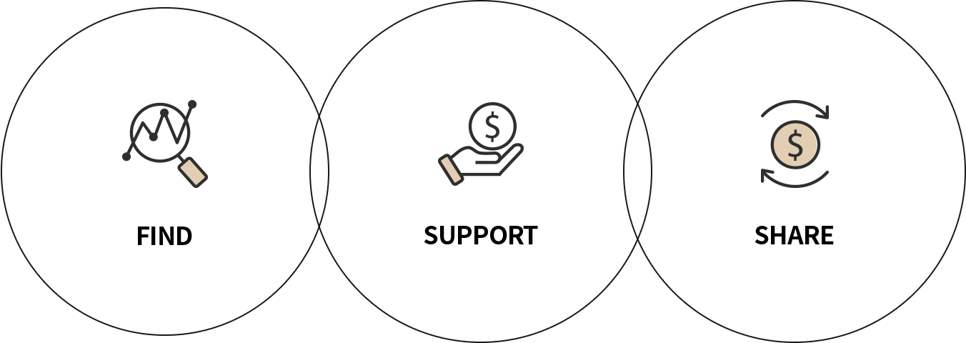 진정한 밸류는 함께 나누는 데 있다고 생각합니다. 파인밸류는 가치있는 기업을 찾고, 성장을 지원하여 창출된 밸류를 고객사와 투자사뿐만 아니라 나아가 국가와 지역사회에 나누고 싶습니다.